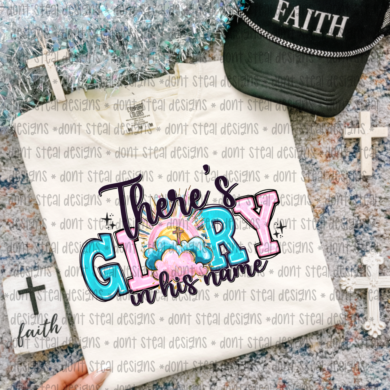 There’s Glory In His Name T-Shirt — Christian Faith Rainbow Graphic Tee